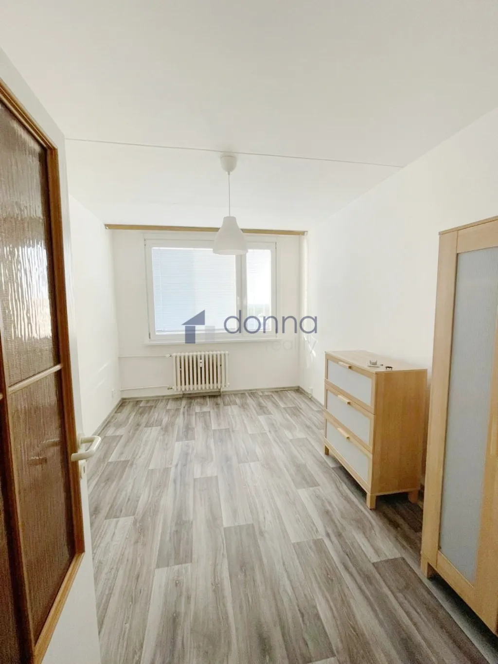 Dvě ložnice: jedna s velkou skříní, druhá s menší skříní a komodou (bez nábytku, ideální na dětský pokoj a ložnici).