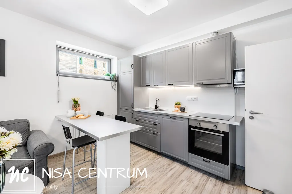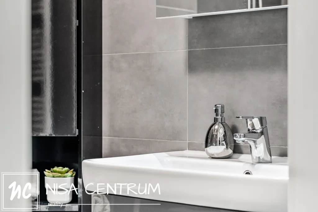 Kuchyňská linka je kompletně vybavena spotřebiči (sklokeramickou varnou deskou, myčkou, lednicí a mikrovlnkou). V koupelně je dostatek místa pro pračku. Bytová jednotka se prodává kompletně zařízená.