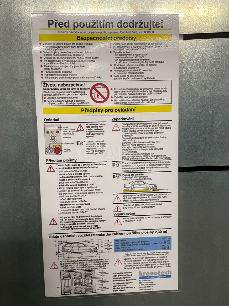 Přístup ke garážovému stání je zajištěn průjezdem domem s dálkovým ovládáním vrat a dalšími vraty ve dvoře. Samotný zakladač je ještě dodatečně zabezpečen, což jistě potěší každého majitele automobilu. Vjezd je vhodný i pro větší auta.