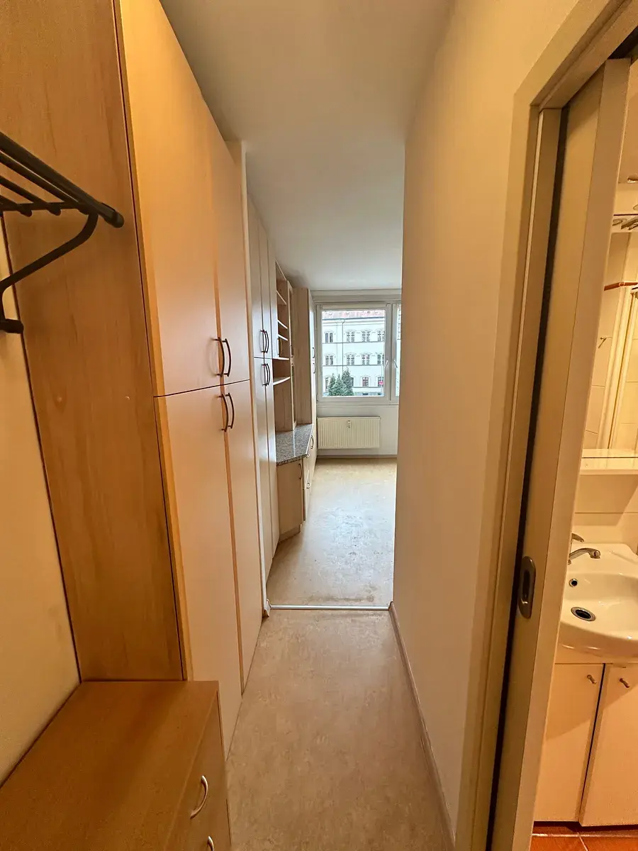 Pronájem částečně vybavené garsonky v centru městské části Děčín I Děčín, ulice Řetězová. Byt je velmi světlý, čistý, prakticky uspořádaný. Je vybavený bytelným moderním vestavěným nábytkem s dostatkem úložného prostoru. Kuchyň je jednoduchá s novým sporákem, v koupelně je bezbariérový sprchový kout, umyvadlo, wc mísa a prostor na pračku a sušičku. Okno je vybaveno žaluziemi.