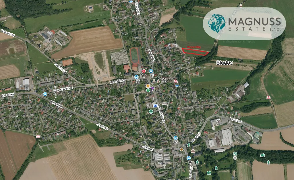 Pozemek o výměře 625 m² (cca 27 × 23 m) má pravidelný tvar a nachází se v klidné a vyhledávané lokalitě „U zámečku“ v Bludově. Příjezd zajišťuje nově vybudovaná zpevněná komunikace. Obec Bludov leží pouhých 5 minut jízdy od Šumperka a nabízí kompletní občanskou vybavenost – školku, základní školu, obchody, restaurace i vlakové spojení. Lokalita je ideální pro rodinné bydlení s klidem venkova a výbornou dostupností.