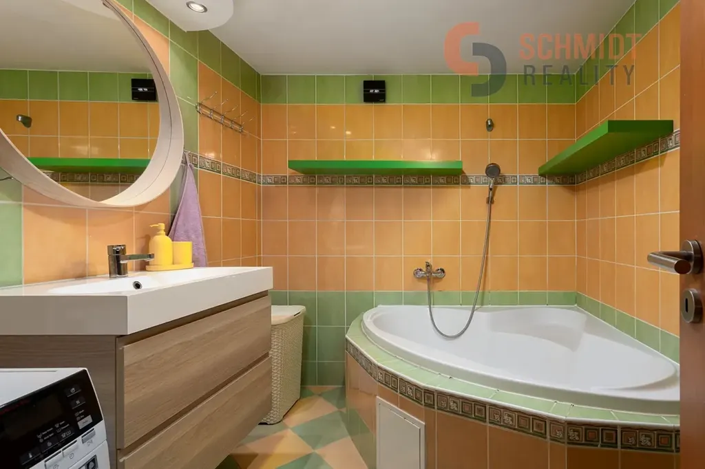 - Podlahové krytiny tvoří plovoucí podlahy, keramická dlažba a koberec v dětských pokojích,