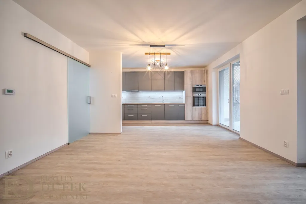 Nemovitost se pronajímá bez vybavení, součástí je však plně vybavená kuchyňská linka s moderními spotřebiči a dostatkem úložného prostoru.
