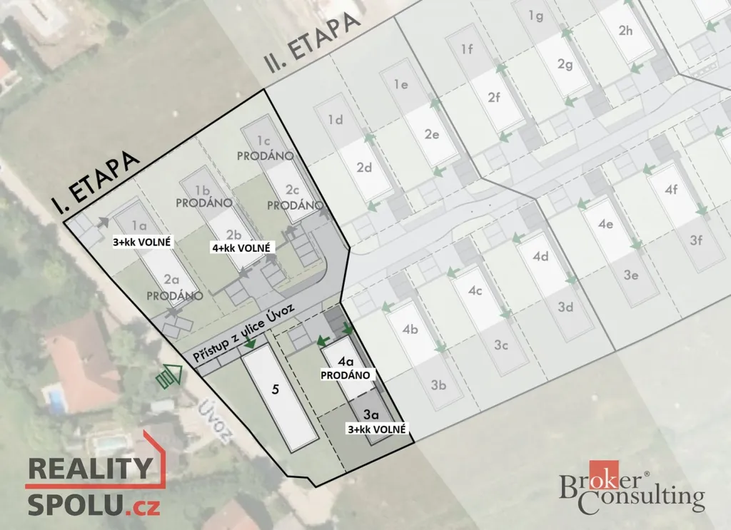 Projekt zahrnuje 40 bytových jednotek o dispozicích 3+kk, 4+kk a 5+kk, umístěných v samostatně stojících novostavbách domů s vlastní zahradou a parkovacím stáním.