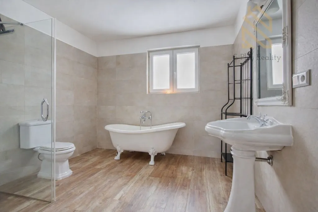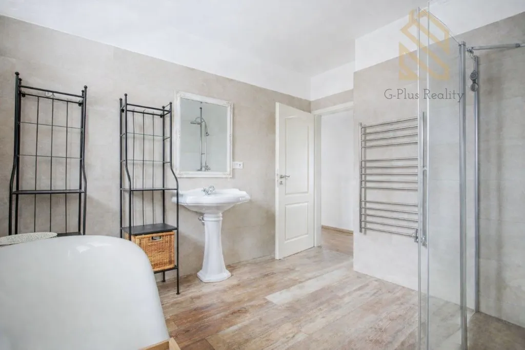 Dispoziční řešení 4+kk poskytuje dostatek prostoru pro rodinu. Z kuchyně, obývacího pokoje i ložnice je přímý vstup na terasu, která přirozeně rozšiřuje obytný prostor a propojuje interiér se zahradou. V zádveří, technické místnosti a koupelně je položena keramická dlažba, v ostatních místnostech jsou kvalitní dřevěné lepené plovoucí podlahy. Také je zde možnost využít i podkroví.