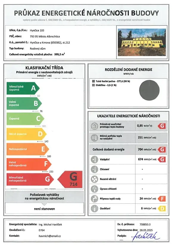 Nemovitá věc – jedná se o rodinný dům stojící na pozemku p.č.st. 212 v k.ú. Hynčice u Krnova, obec Město Albrechtice, částečně podsklepený s dvěma nadzemními podlažími. Základní svislé nosné konstrukce jsou zděné, objekt je napojen na veškeré inženýrské sítě. V domě jsou dvě bytové jednotky 1+1 a 4+1, každý byt má samostatný otopný systém. V druhém nadzemním podlaží je bytová jednotka 1+1 a půda. Příjezd a přístup k nemovitosti je přes pozemky LČR.