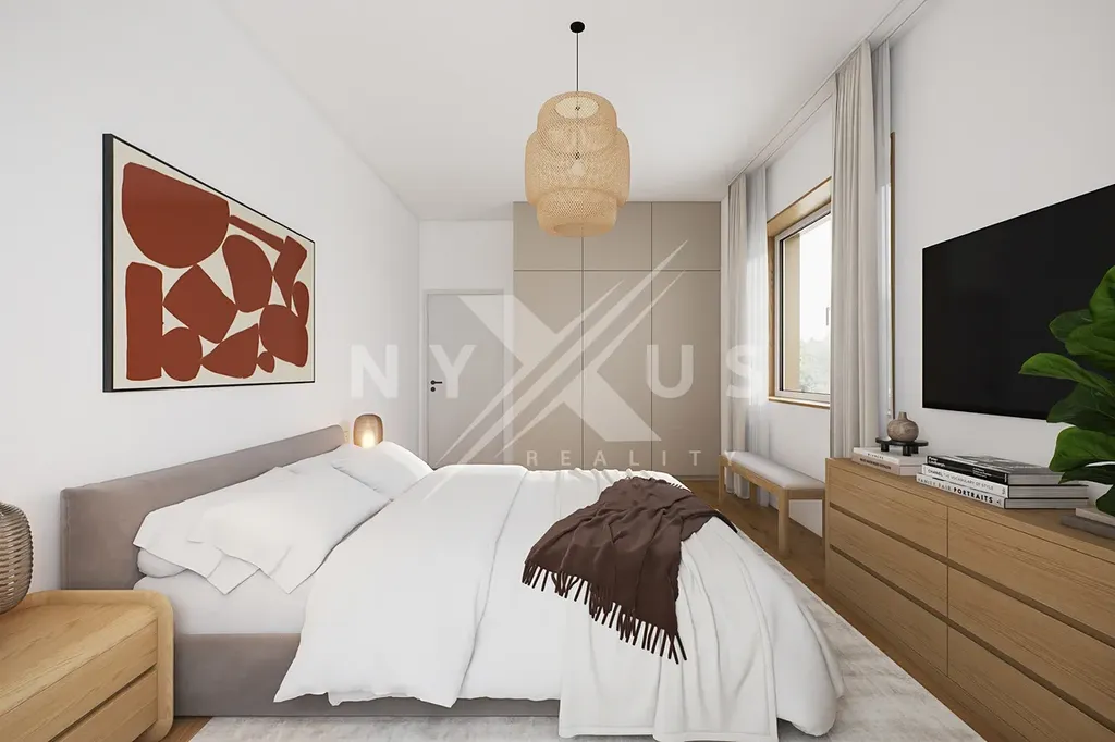 Apartmán nabízí praktické dispoziční řešení s oddělenou ložnicí, prostorným obývacím pokojem s kuchyňským koutem a dostatkem úložného prostoru. Velkorysé prosklení zajišťuje dostatek denního světla a příjemnou atmosféru horského bydlení.