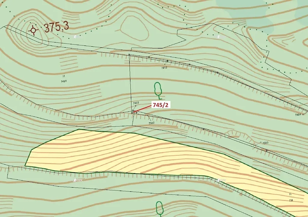 Lesní pozemek o výměře 5 m2, parcelní číslo 745/2, podíl 9/10, katastrální území Zubrnice, obec Zubrnice, obec s rozšířenou působností Ústí nad Labem, okres Ústí nad Labem, Ústecký kraj.