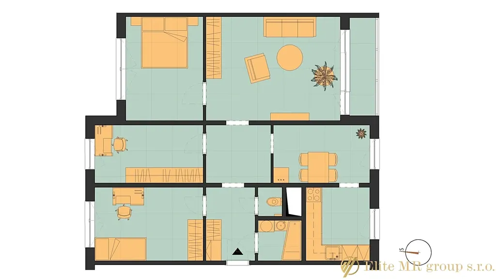 Byt prošel kompletní rekonstrukcí a je připraven k okamžitému nastěhování. Dispozice nabízí prostornou kuchyň s jídelnou, obývací pokoj, tři samostatné ložnice, chodbu a vstupní předsíň. V kuchyni najdete moderní kuchyňskou linku na míru vybavenou vestavěnými spotřebiči – troubou, varnou deskou i digestoří.