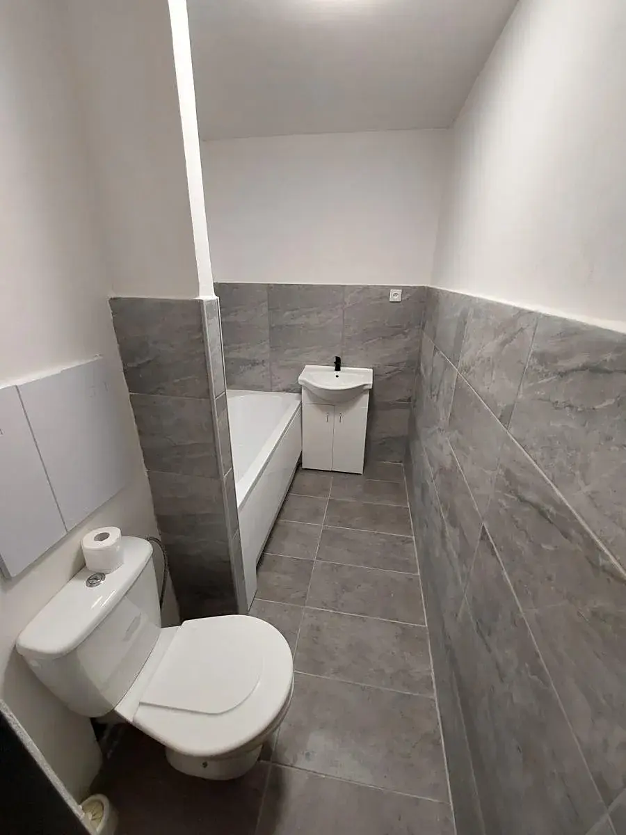 V kuchyni je vkusná kuchyňská linka s elektrickým sporákem, přípojka na pračku či myčku připravena. Koupelna je obložena moderními obklady, je zde vana, umyvadlová skříňka a WC. Místnosti jsou prostorné.