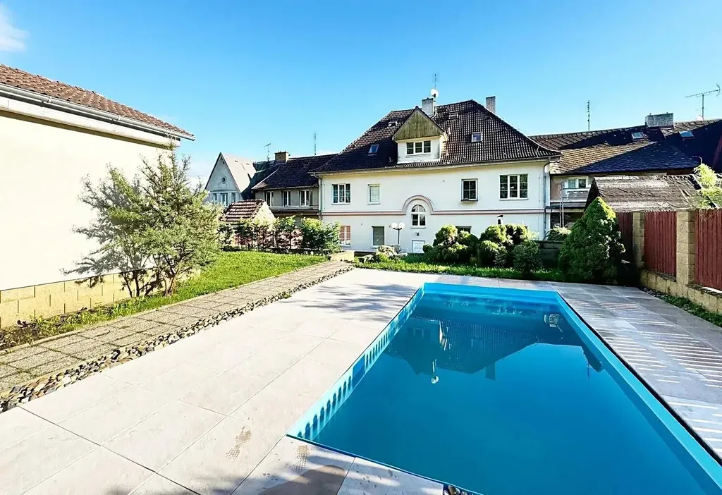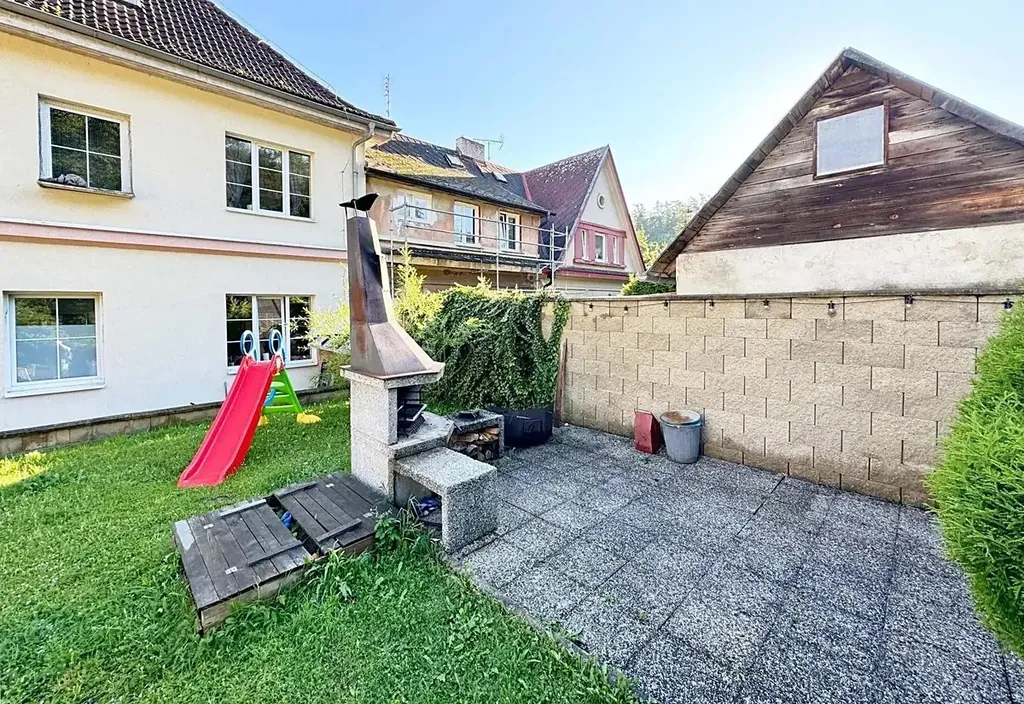 Dům je po revitalizaci (okna, zateplení), nachází se v horní, klidné a udržované části Lomu v řadové zástavbě. Dům má vlastní zahradu s posezením, krbem, bazénem a garáží. Zbylé 4 byty jsou obsazeny slušnými nájemníky. Vytápění a ohřev vody zajišťuje centrální plynový kotel + kombinovaný zásobník na vodu nacházející se v technické místnosti ve sklepě.