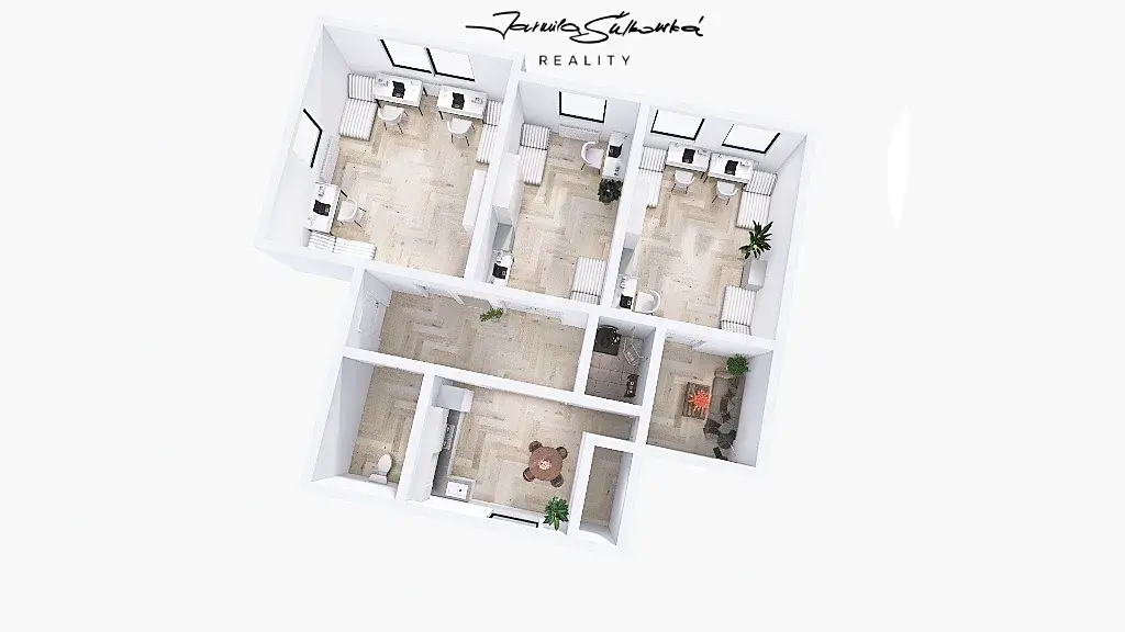 Byt k pronájmu v II. nadzemním podlaží prošel citlivou rekonstrukcí, která respektuje původní ducha domu — žádná sterilní novostavba, ale prostor s příběhem. Velkorysých 108 m² nabízí tři neprůchozí pokoje, stylovou koupelnu se sprchovým koutem a dostatek prostoru pro osobní věci. Kuchyně je vybavena novou, nadčasovou linkou a lednicí — ideální pro společné večeře, ranní kávu nebo noční debaty nad skripty. A když potřebuješ ticho a klid? Čeká na tebe útulná studovna, kde se ti bude soustředit úplně jinak než v přeplněné knihovně.