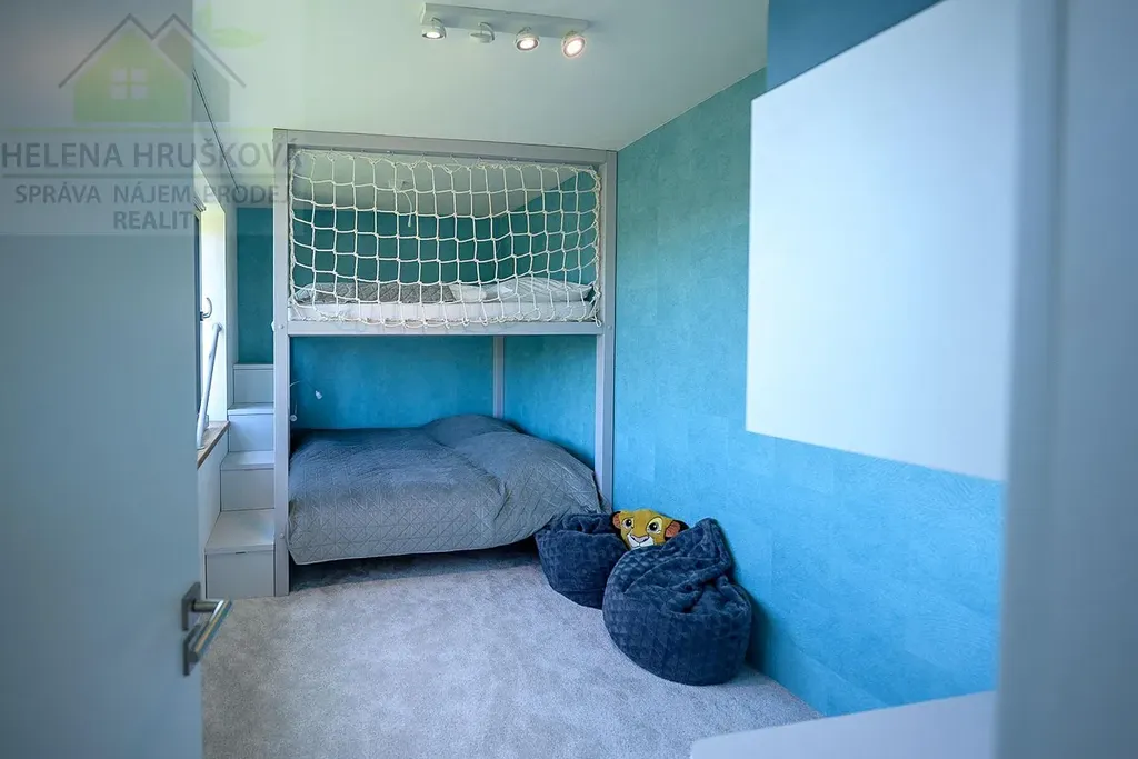 Pronajímá se včetně vybavní nábytkem, sedací souprava, jídelní stůl pro osm osob, TV, designové osvětlení, kompletní vybavení ložnice a dětského pokoje, úložné prostory, kvalitní zatemnění - závěsy.
