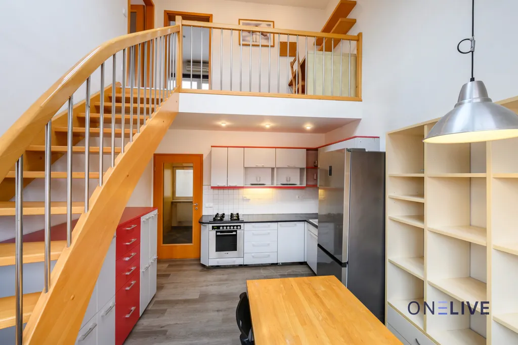 Nabízíme k pronájmu prostorný a světlý mezonetový byt o celkové ploše 89 m², umístěný v 6. a 7. nadzemním patře bytového domu s výtahem v oblíbené lokalitě Praha – Holešovice. Byt je situován v posledním patře domu, což zajišťuje dostatek soukromí, klid a otevřené výhledy do okolí.