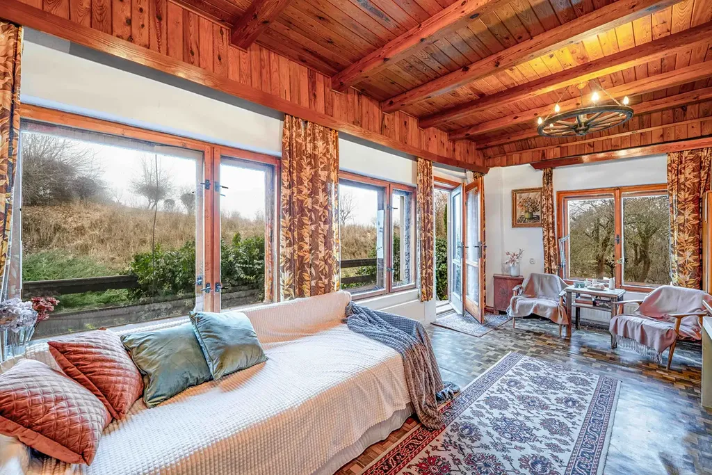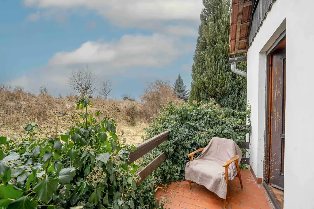 Právě odsud vede vstup na půdu, kde se nachází další balkon s nádherným výhledem do klidné krajiny.