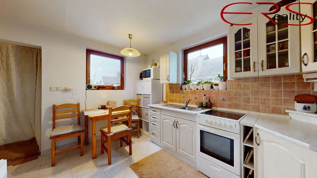 V domě se nachází kuchyně, dva pokoje, koupelna s WC, spíž a chodba. Za domem je hezký, upravený pozemek cca 120 m².