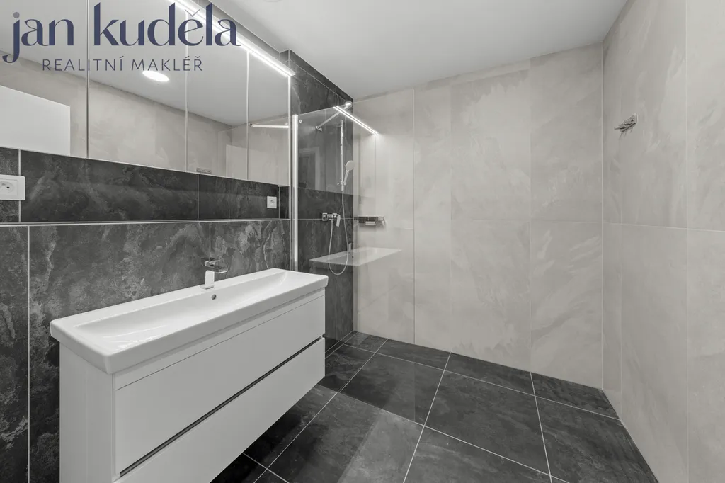 K pronájmu nabízíme zcela nový byt o dispozici 3+kk v 3. nadzemním podlaží moderního bytového domu. Užitná plocha bytu činí 75,1 m², celková plocha včetně dvou teras je 113,2 m². V bytě dosud nikdo nebydlel.
