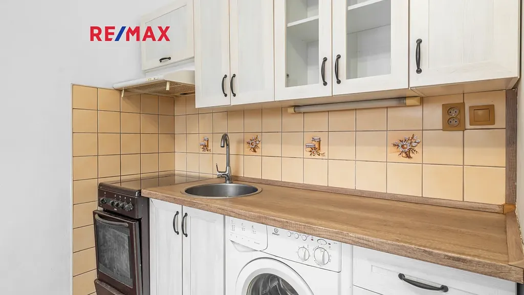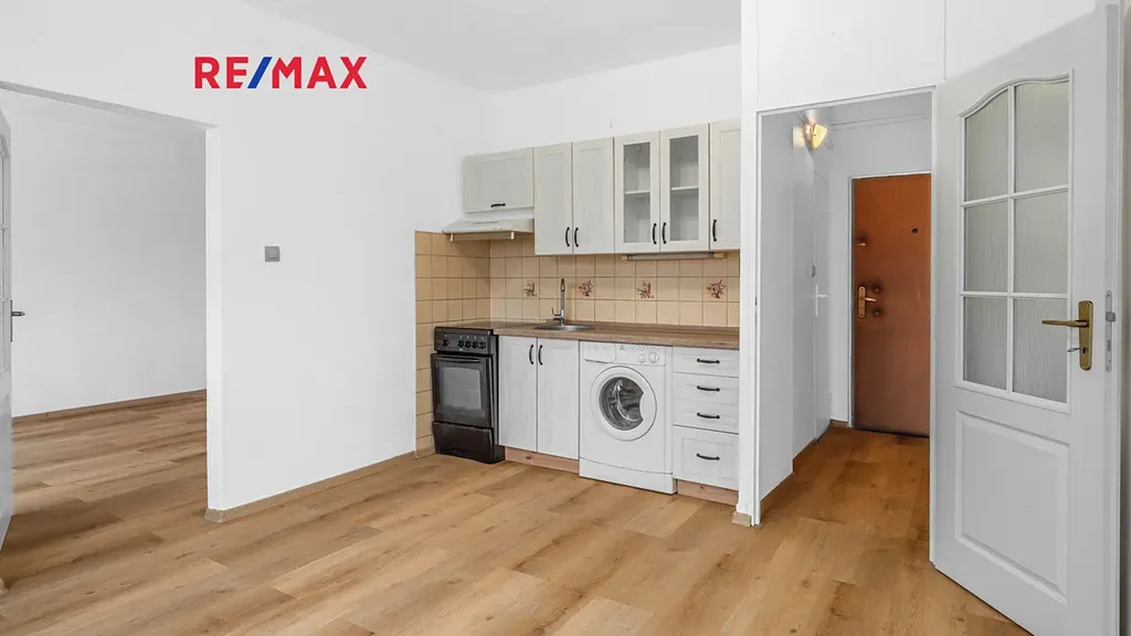 Dispozice: samostatná kuchyň s kuchyňskou linkou, obytný pokoj, předsíň a koupelna se sprchovým koutem a toaletou. Byt je aktuálně obyvatelný a může posloužit ihned (např. jako startovací bydlení), zároveň ale nabízí prostor pro modernizaci či rekonstrukci podle vlastních představ – v dobrém místě se takové úpravy vyplatí. Stav je z větší části původní, včetně původního umakartového jádra. Byt má nové podlahy a vnitřní dveře. Dům prošel celkovou revitalizací a je zateplený.