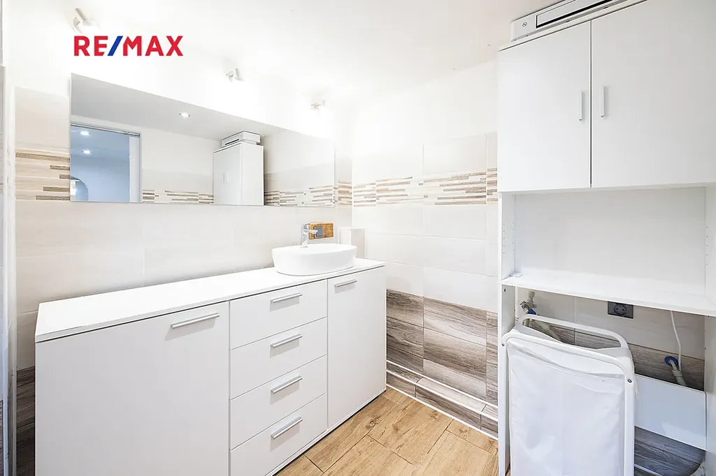 V přízemí se nachází koupelna s toaletou, kuchyň a technické zázemí. V prvním patře je obývací a spací prostor s krásným výhledem na protější kopec a pod střechou je možno prostor využít ke spaní nebo jako pracovní kout.