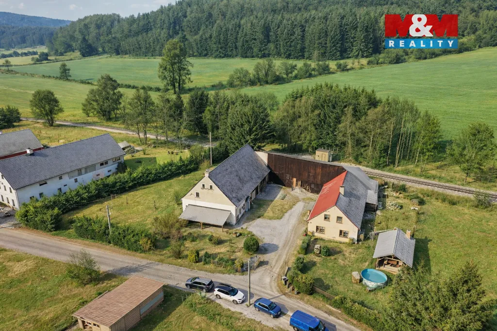 Nabízíme k prodeji usedlost (dva rodinné domy spojené prostornou stodolou) s pozemky v malebné vísce Bohdašín, Teplice nad Metují. Oba domy jsou zděné, napojené na veřejný vodovod, odpady stažené do septiku, vytápěny jsou společným kotlem na tuhá paliva, zavedená elektřina, internet, ohřev teplé vody bojlerem a průtokovým ohřívačem. Usedlost je ideální volbou pro ty, kteří hledají klidné bydlení s dostatkem soukromí. Jeden dům (1883) je nyní využíván jako prosperující pension s kuchyní, dvěma pokoji, koupelnou. Druhý dům (1930) je využíván pro rodinné bydlení. Dispozice: kuchyně, chodba, obyvák, ložnice, koupelna a v 2NP tři pokoje, šatna. Stav nemovitostí je dobrý, probíhá průběžná revitalizace obou domů a realizace fotovoltaiky. Občanská dostupnost dobrá. Jedná se o turisticky atraktivní lokalitu. Adršpašsko-Teplické skály i Broumovské skály. Je tu dostatek možností na cyklistické výlety. V zimě jsou upravené běžkařské trasy a sjezdovka.