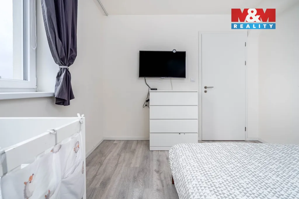 Po vstupu do bytu vás uvítá předsíň s vestavěnou skříní. Koupelna je prakticky oddělená od toalety. Na chodbu navazuje kuchyňský kout propojený s prostorným obývacím pokojem. Dále je zde oddělená ložnice a menší místnost, kterou lze využít jako pracovnu nebo relaxační koutek. K bytu patří sklep, kočárkárna a vlastní parkovací stání.
