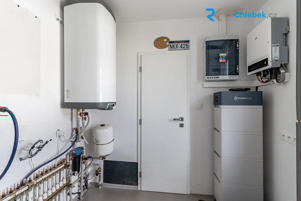 Kvalitně postavená cihlová stavba splňuje energetickou náročnost kategorie A (PENB). Fotovoltaické panely 10kWp a bateriové úložiště 15kW nabízejí možnost poslat přebytky do sítě nebo si nabíjet elektro auta přímo doma. Před okenní rolety, posuvné terasové dveře na zahradu a výběr kvalitních materiálů se smyslem pro detail je zaslouženým luxusem.