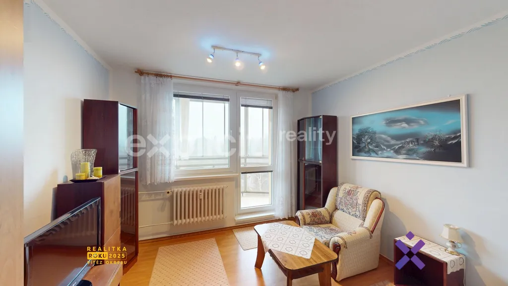 Vedle ložnice je obývací pokoj, který je zařízen sedací soupravou, konferenčním stolkem, prosklenými skříňkami a televizním stolkem s televizí. Z obývacího pokoje je vstup na prosklenou lodžii, která přináší dostatek světla a příjemný prostor pro relaxaci.