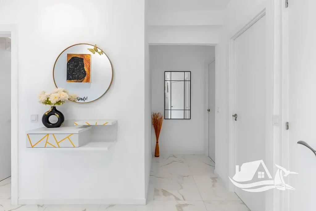 Apartmán je plně zařízený, vybavený klimatizací, spotřebiči, roletami a připravený k okamžitému užívání bez nutnosti dalších investic. Moře je doslova na dosah, pouhých 30 metru od domu, centrální náměstí La Mata je vzdálené přibližně 100 metrů. V pěší dostupnosti se nachází restaurace, kavárny, obchody, lékařská centra i veškerá občanská vybavenost, což zajišťuje pohodlné celoroční fungování.