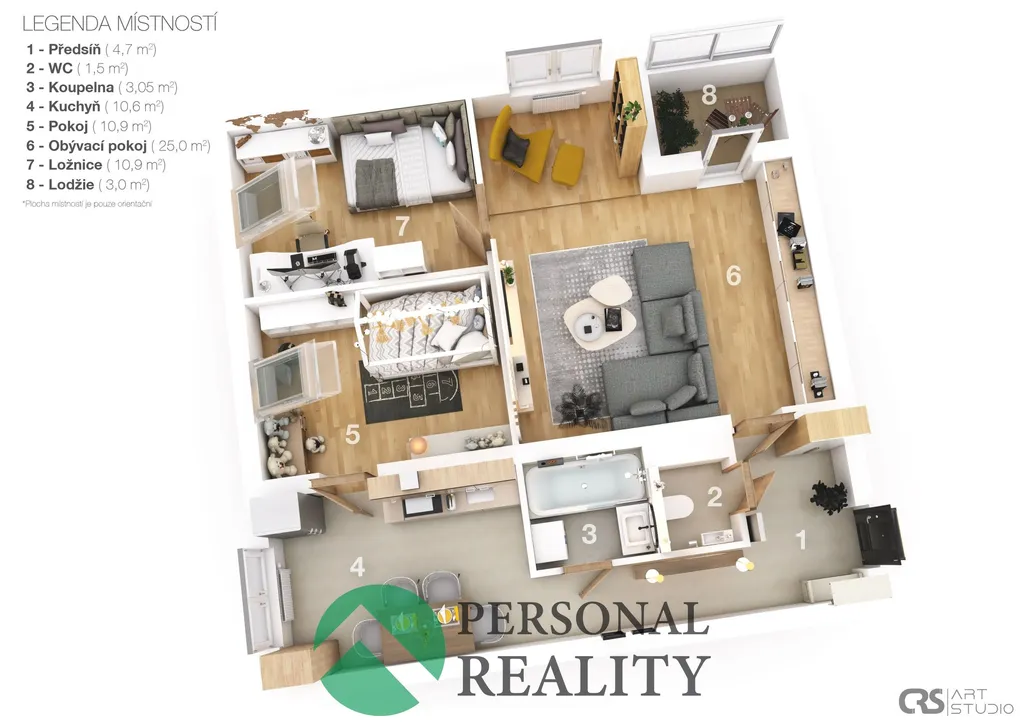 Exkluzivně nabízím k prodeji krásný, prostorný, zrekonstruovaný cihlový byt o velikosti 70m2, se zasklenou lodžií o velikosti 1m2 a se sklepem o velikosti 2m2. Byt se nachází ve 3.patře menšího cihlového bytového domu (pouze šest bytových jednotek),kolaudovaného v roce 2001, ve velmi atraktivní lokalitě v samotném centru města Kladna, ulice L. Janáčka. Jedná se o atraktivní klidnou lokalitu s kompletní občanskou vybaveností v těsné blízkosti kladenské pěší zóny a obchodního centra Centrál .Ve vnitrobloku domu se nachází zahrada určená k relaxaci, posezení či grilování, což je vhodné zejména pro rodiny s dětmi. K bytu je možno si pronajmout venkovní parkovací stání nacházející se hned vedle domu, a to za cenu 1 500 Kč měsíčně (není podmínkou koupě, spíše bonusem). Byt prošel zdařilou rekonstrukcí, zahrnující nové vstupní dveře (protihlukové, protipožární), renovaci podlah, kterou tvoří kombinace vinylu a dlažby, střešní okna byla osazena venkovní solární roletou a okna jsou plastová, izolační. Dále byly renovovány sádrokartonové podhledy, včetně izolace a došlo k osazení bytu novými topnými tělesy. Orientace bytu - J/Z - jedná se o světlý a slunný byt, tvořený vstupní předsíní, prostornou chodbou, kuchyní, koupelnou s vanou, samostatným WC, dvěma ložnicemi a prostorným obývacím pokojem se zasklenou lodžií. Stěny - štuky, malba, rozvody vody - plast, elektřiny - měď. Obložkové dveře se zárubněmi, vstupní dveře jsou bezpečnostní a protipožární. V ceně zůstává kuchyňská linka včetně spotřebičů, částečné vybavení - na míru vestavěné skříně v předsíni a obývacím pokoji. Měsíční náklady jsou 7 000 kč. Lze využít hypotéku ,s jejímž vyřízením Vám mohu pomoci.