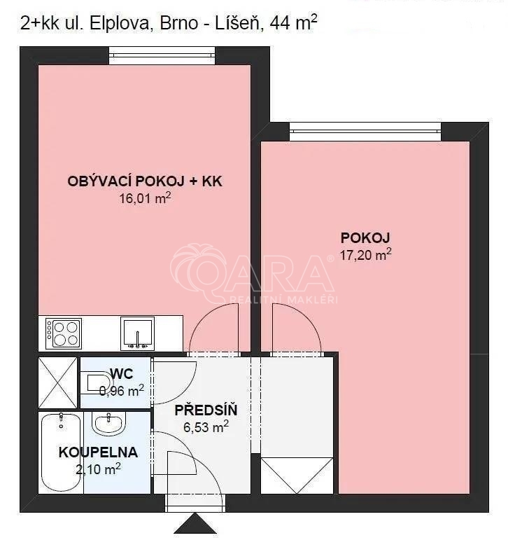 Prodej bytu 2+kk, Brno - Líšeň, Elplova, 44 m2