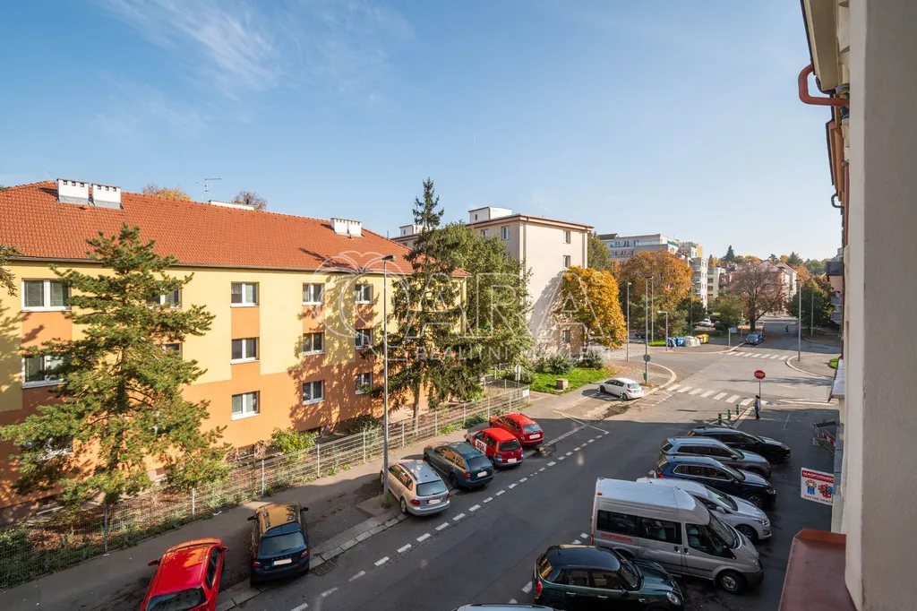 Bytový dům se nachází ve vedlejší méně frekventované ulici. Ke stanici metra A Strašnická se můžete svézt 1 zastávku tramvají nebo dojít pěšky za 5 minut.