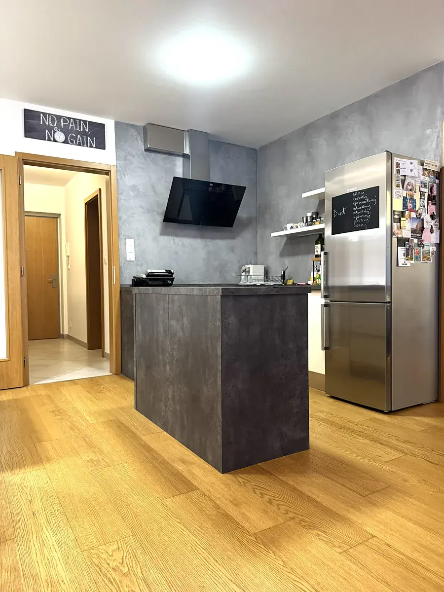 Dispozice bytu je řešena s důrazem na praktičnost a dostatek úložného prostoru. Obytný prostor s kuchyňským koutem plynule navazuje na terasu, který nabízí příjemné místo k posezení a relaxaci. Zaujme Vás i prostorná ložnice se samostatnou šatnou pracovním koutem.