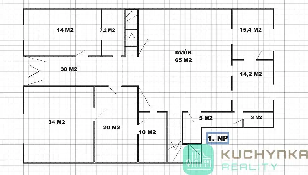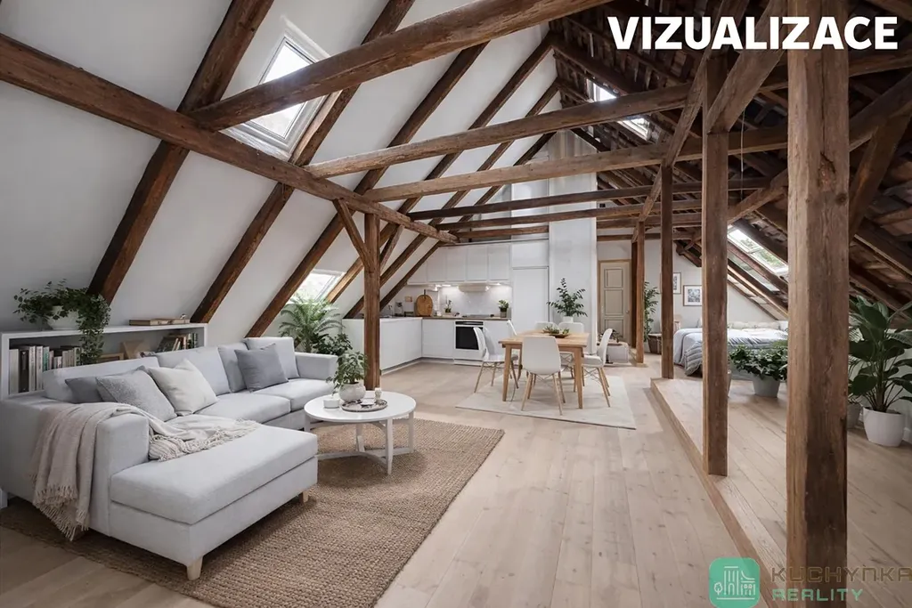 Možnost vybudování až 9 bytů ve dvou podlažích + podkroví.