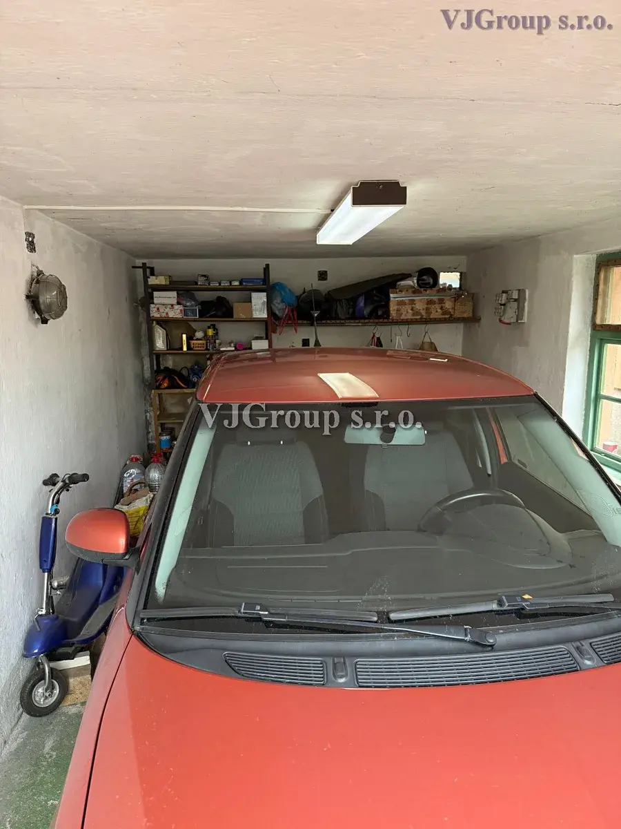 Nabízíme Vám ke koupi zděný jednopodlažní podsklepený rodinný dům obdélníkového půdorysu s prostorným půdním prostorem, se zahradou a se zděnou garáží a zahradními přístavky na okraji malé obce Podlešín, nacházející se v lokalitě Středočeského kraje, necelých 6 km od města Slaný.