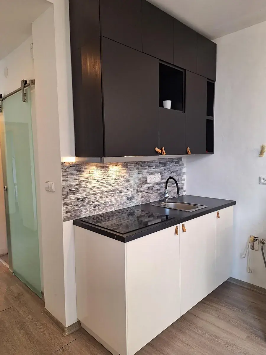 Nabízíme k pronájmu zánovní byt 2+kk s prostorným balkonem v centru Brna. Byt je v přístavbě na starším domě v klidné ulici přesto blízko do samotného středu města. Vejdete do prostorné předsíně, kde můžete vpravo vstoupit do útulné a prostorné ložnice. Vlevo potom najdete koupelnu s masážní a dešťovou sprchou, umyvadlem a moderní toaletou. Přímo proti vstupu do bytu je potom světlá obytná místnost s kuchyňským koutem, jídelním stolem a pohodlným posezením. K venkovní relaxaci pak můžete využít poměrně velký balkon.