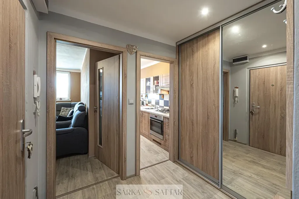 Prostorný obývací pokoj (19.5m2) se vstupem na prostornou lodžii s posuvným zasklením, samostatnou kuchyň (11m2) vybavenu el. troubou, plynovou varnou deskou, myčkou, lednicí s mrazákem. Obě ložnice mají východní orientaci. Koupelna má vanu dále umyvadlo, přívod na pračku. Toaleta je samostatná. V bytě je vestavěná skříň u vstupu a také vestavěný úložný prostor.