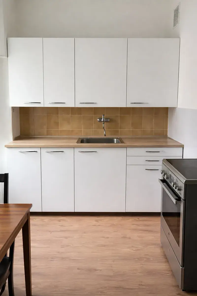 Byt je připravený k okamžitému nastěhování. Vhodný pro jednotlivce nebo pár. Kouření v bytě a v budově je zakázáno.