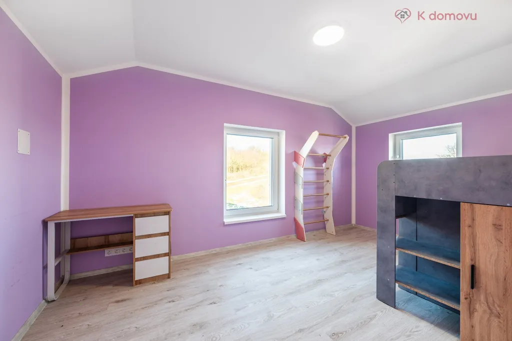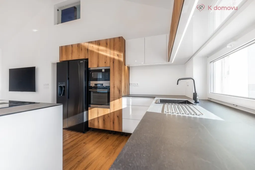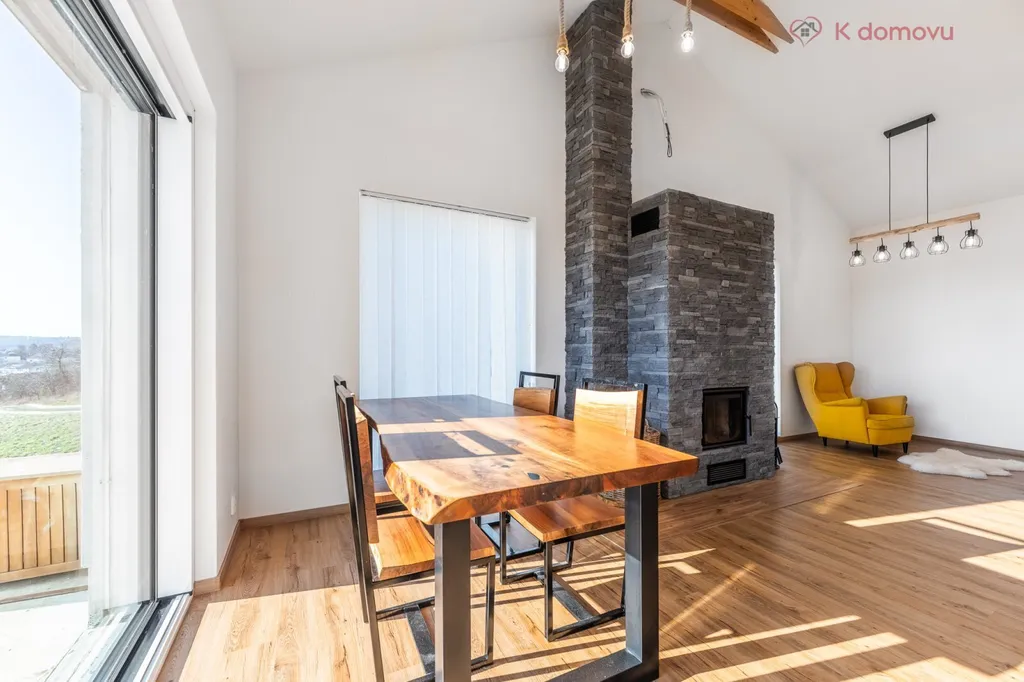 Dům o velikosti 207 m2 nabízí velmi zdařilou dispozici 5+kk, ve které je samozřejmostí velká šatna a technická místnost. Maximální komfort zajišťují dvě koupelny a dvě toalety. Dominantou obývacího pokoje je krb, který je napojen na podlahové topení a vytápí celý dům. Záložní zdroj vytápění je elektrokotel. Dům je připraven na instalaci solárních panelů. Moderní kuchyň je vybavená kvalitními elektrospotřebiči značky AEG. Součástí domu je rozlehlá terasa, která je jako dělaná pro letní grilovačky a instalaci vířivky. Dům je těsně před dokončením, proto některé detaily jako je barva fasády, žaluzií atd., můžete přizpůsobit svému vkusu. Parkovaní u domu pojme až 4 auta. Pozemek o výměře 770 m2 zajišťuje dostatečné soukromí.