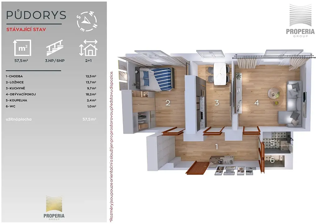 Byt o dispozici 2+1 a užitné ploše 57,5 m² se nachází ve 3. nadzemním podlaží revitalizovaného cihlového domu z roku 1960 s výtahem. Díky svému stavu představuje ideální základ pro rekonstrukci – a právě v tom spočívá jeho největší potenciál.