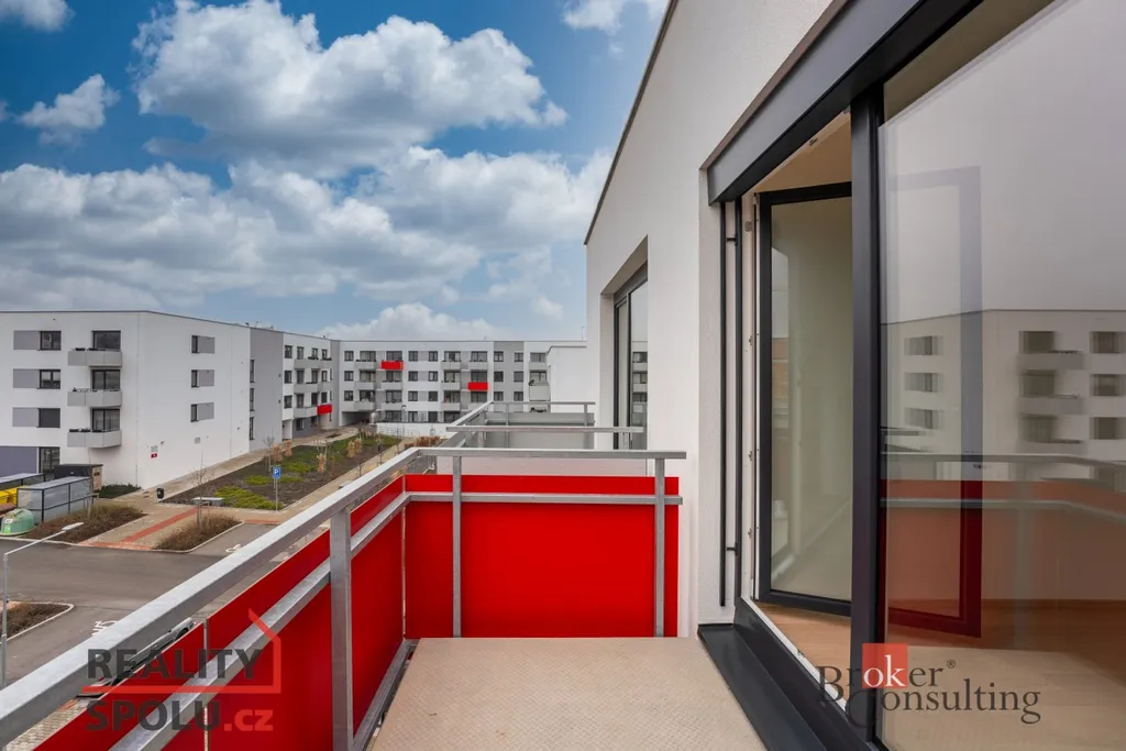 Nabízíme k pronájmu světlý byt 2+kk o užitné ploše 56 m² ve 4. patře novostavby s výtahem. Byt disponuje prostorným obývacím pokojem s kuchyňským koutem vybaveným moderními spotřebiči, ložnicí, koupelnou se sprchovým koutem a WC. Balkón s příjemným výhledem, vlastní parkovací stání a sklepní kóje jsou součástí nabídky. Okna jsou opatřena předokenními žaluziemi.