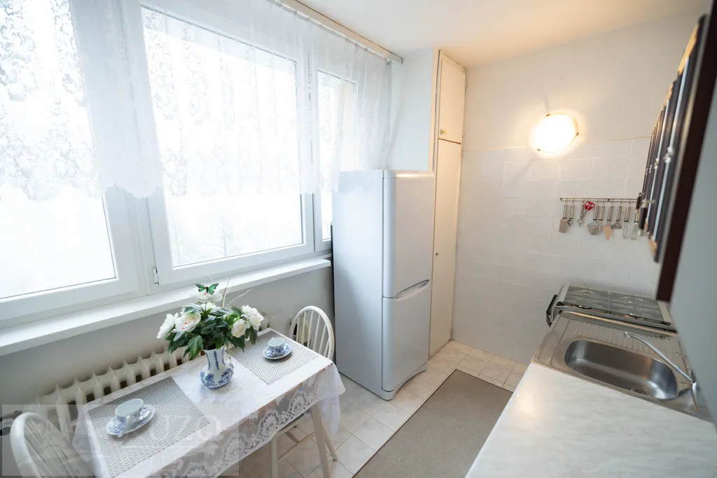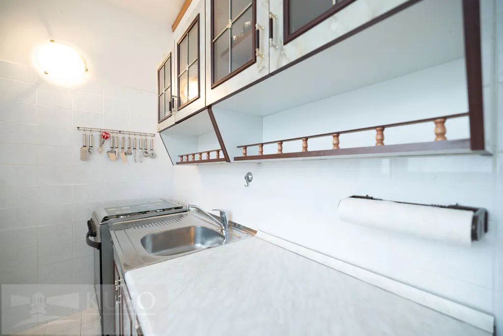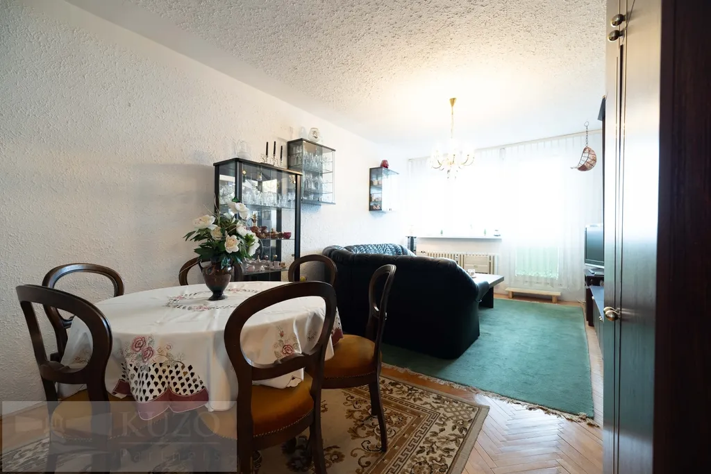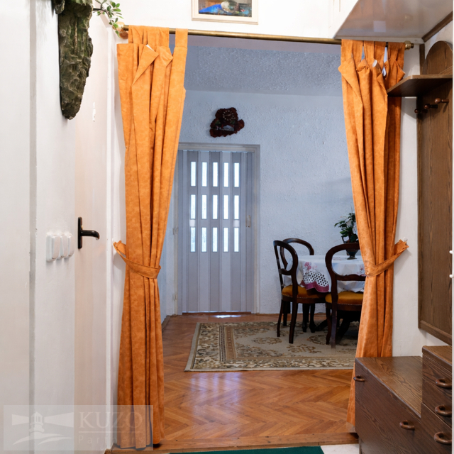 Udržovaný byt v původním stavu je kompletně vybavený starším nábytkem.