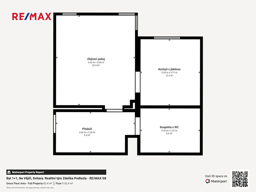 Plocha bytu je 59 m2 včetně zděného sklepa 3,8 m2, který je umístěn ve snížením přízemí. Byt je bezbariérový. Je umístěn v přízemí domu s přístupem bez nutnosti překonat výškovou překážku, má širší vstupní i interiérové dveře, prostorné zádveří a velkou koupelnu. Orientace bytu je na východ.