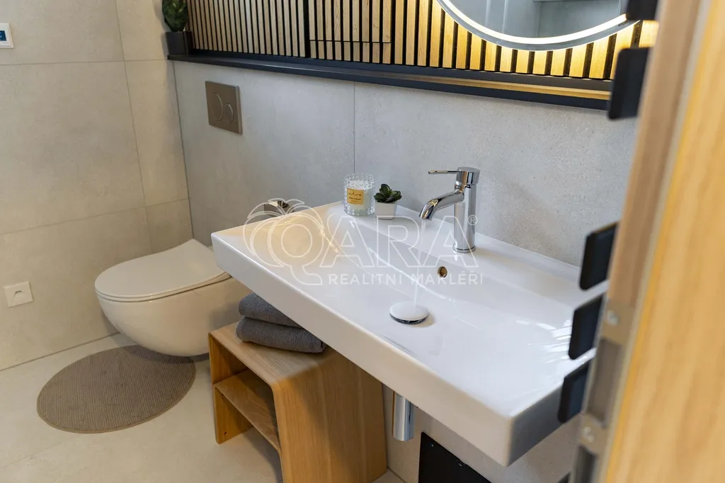 Interiér domu je navržen v moderním a nadčasovém stylu s důrazem na kvalitu a funkčnost. Dům se prodává včetně vybavení, takže umožňuje nastěhování bez nutnosti dalších investic a zajišťuje maximální pohodlí hned od prvního dne.