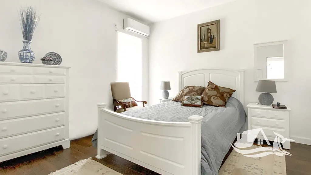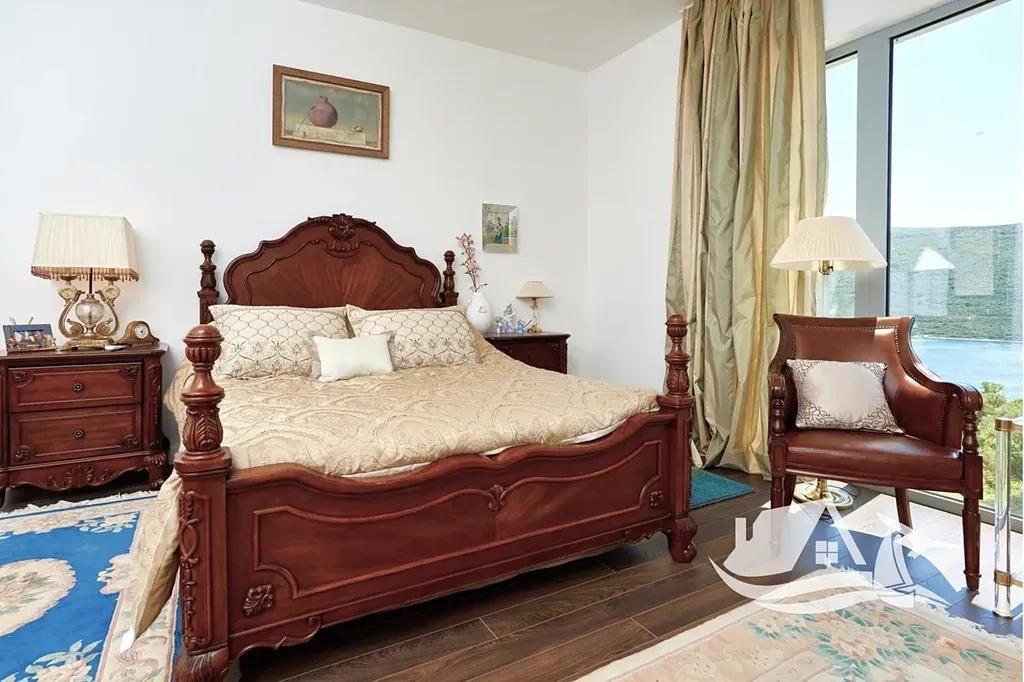 V horním patře se nachází hlavní ložnice s vlastní šatnou, dvě další ložnice pro hosty a tři koupelny. Každá ložnice má přímý vstup na terasu, odkud se otevírá ničím nerušený pohled na záliv. Celý dům je zařízen v moderním stylu s důrazem na detail, kvalitu materiálů a nadčasový design, který vytváří harmonické a klidné prostředí vhodné jak pro trvalé bydlení, tak pro rekreační využití.