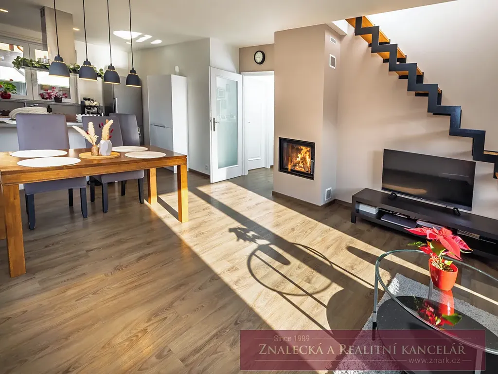 Dům je novostavba kolaudovaná v roce 2018, ve velmi dobrém technickém stavu, připravená k nastěhování bez nutnosti dalších investic. Interiér je světlý, vzdušný a působí útulným dojmem. Prostorný obývací pokoj propojený s kuchyní a jídelnou o ploše 36,25 m², doplněný krbovou vložkou, která vytváří příjemnou atmosféru zejména v chladnějších dnech. Prostor je ideální pro společné chvíle s rodinou i přáteli.