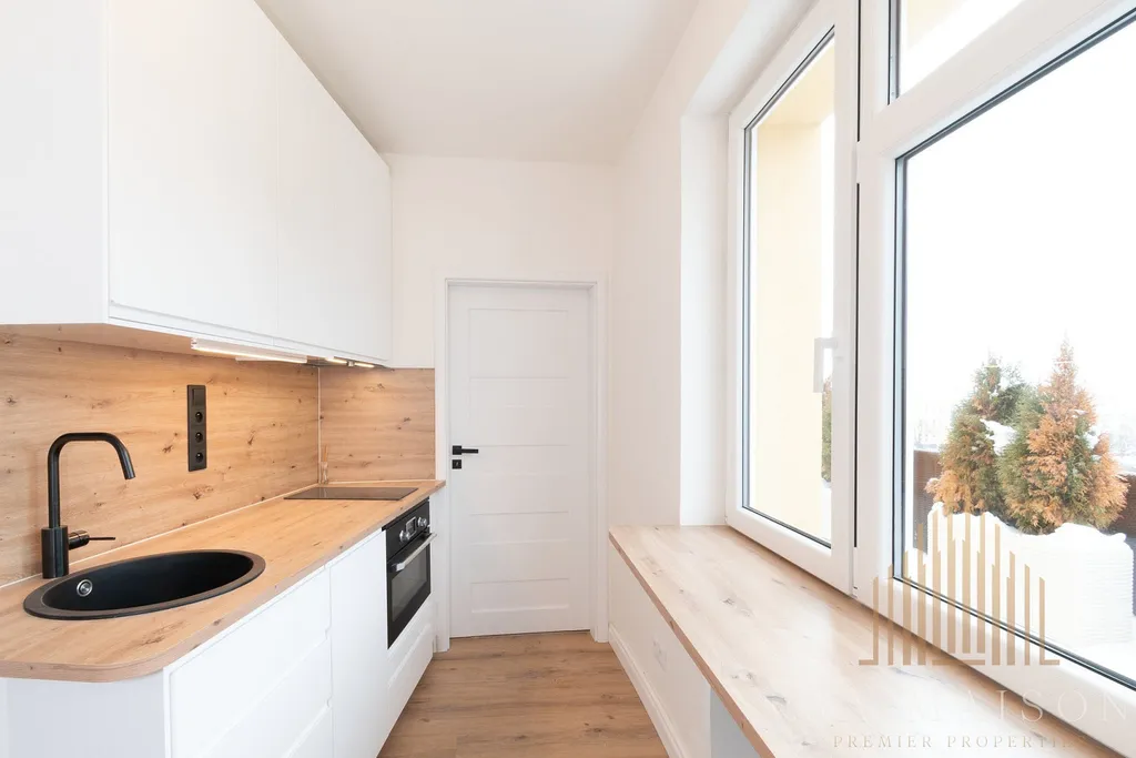 Nabízíme k pronájmu nový, částečně zařízený byt 1+1 o velikosti 36 m² s prostornou terasou o rozloze 17 m². Byt se nachází ve 4. patře cihlového domu po kompletní rekonstrukci v ulici Veleslavínská, Praha 6. Dům nemá výtah, byt je situován v posledním patře a dosud v něm nikdo nebydlel.