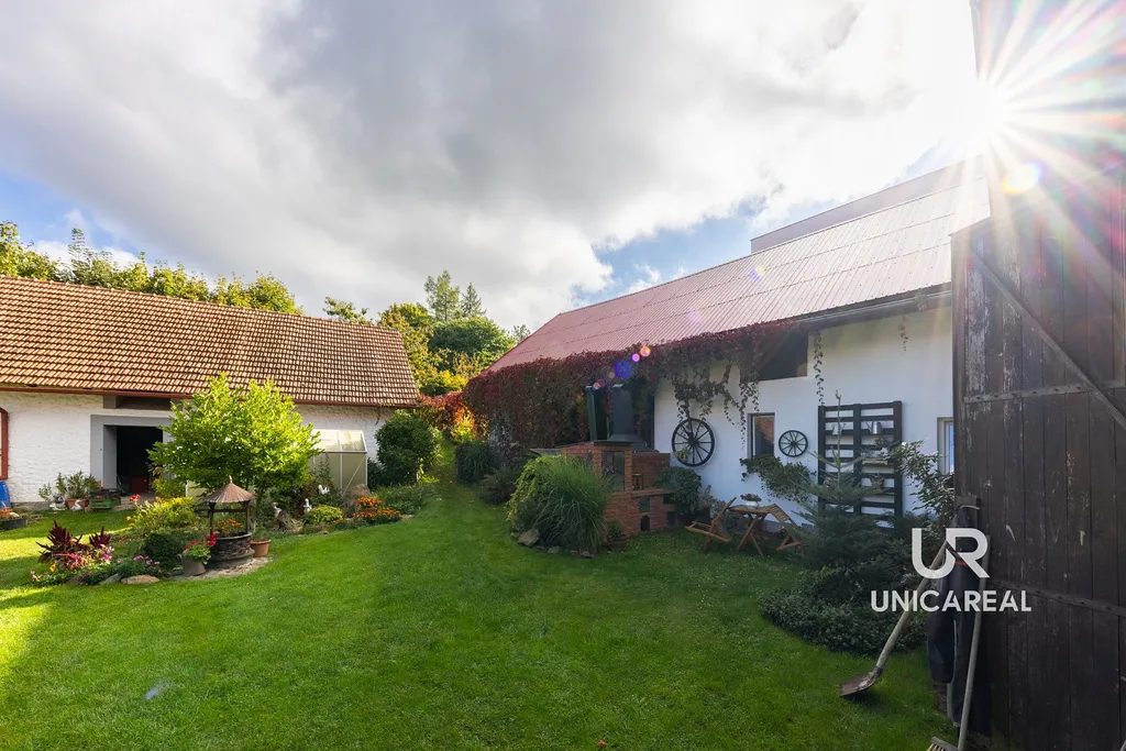 Tato nemovitost si Vás okamžitě získá svou atmosférou i jedinečným charakterem. Součástí areálu je obytná stavba, prostorná stodola a hospodářské objekty, které dohromady vytvářejí uzavřený dvůr poskytující maximální soukromí. Usedlost je ideální jak pro trvalé bydlení, tak pro rekreační účely či investiční záměry.