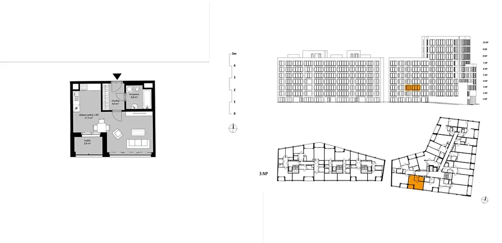 Nabízíme k dlouhodobému pronájmu kompletně zařízený byt 1+kk, 40 m² s lodžií 5 m², v novém rezidenčním projektu Port Karolina, v ulici Breitfeldova 709/17, Praha 8 - Karlín, 186 00, ve 3. patře budovy.