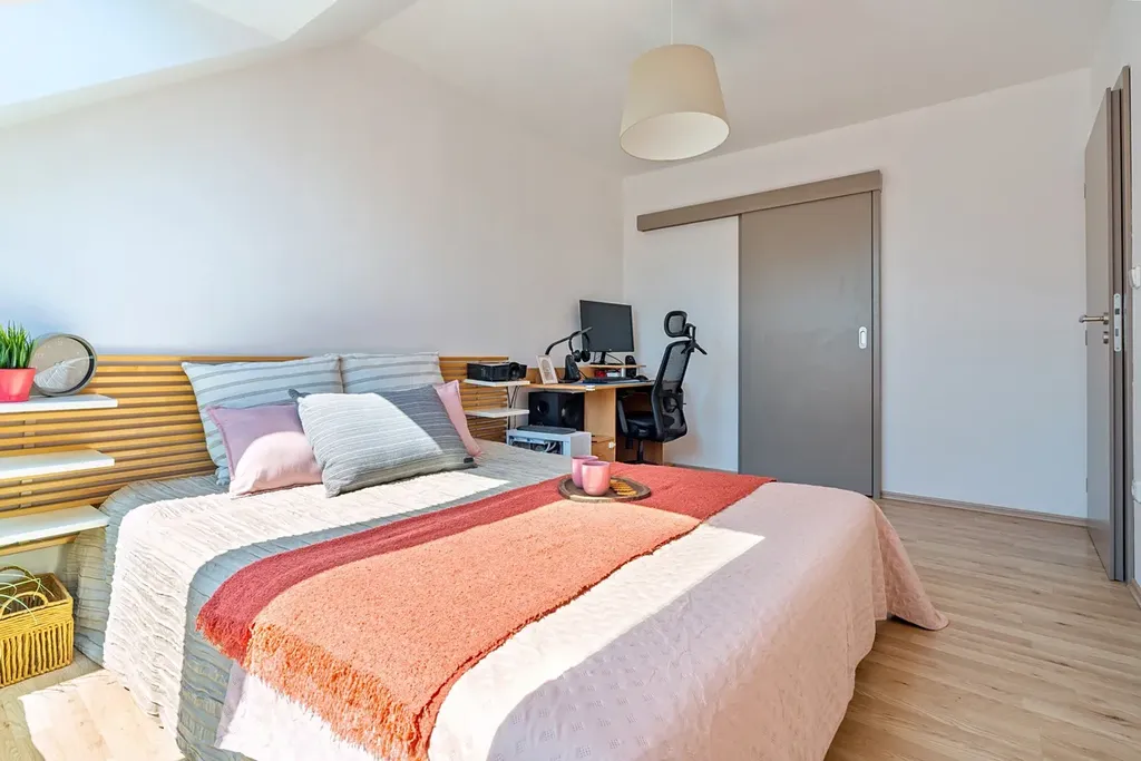 Dovolte mi nabídnout k pronájmu krásný byt nedaleko centra Brna. Jedná se o byt s dispozicí 2+kk, který je situovaný ve 4. patře s výtahem a je součástí nástavby bytového domu, realizované v roce 2016. Celková užitná plocha je 58 m², přičemž sklep tvoří 4 m² z celkové užitné plochy. Díky poloze v rámci Brna, skvělé dostupnosti prostřednictvím MHD a téměř kompletní vybavenosti jak v okolí, tak i zařízením bytu, se jedná o zajímavou možnost řešení vaší bytové potřeby.