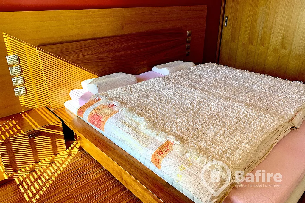 Jedná se o velice dobře řešený byt, který má 2 samostatné ložnice a obývací pokoj s plně vybaveným kuchyňským koutem. V koupelně, která je přístupná z chodby, se nachází vana se skleněnou zástěnou, umyvadlo včetně zrcadla s osvětlením a také pračka. WC je samostatně. Byt rovněž disponuje velkým množstvím úložného prostoru, jako jsou věstavěné skříně či komody. Byt se pronajímá plně vybavený tak, jak je možné vidět na fotografiích.